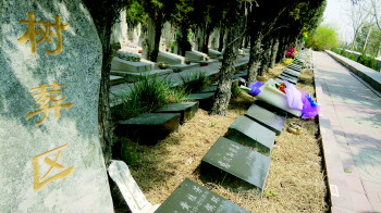 去年清明节,市民到树葬区祭扫。 (资料片)