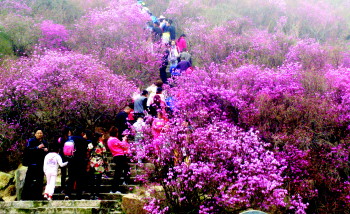 大珠山的杜鹃花正竞相开放,吸引了大批游人观赏。