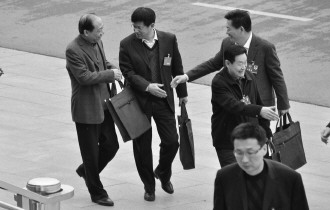 在本次两会会场内外,记者处处感受到了洋溢着的团结亲切的氛围。大家共聚一堂,共同参政议政。图为在进入会场之前,与会人员相见后格外亲切,互相握手致以敬意。 本报记者 袁鹏 摄影报道