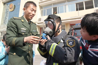27日,滕州市实验小学新校科圣路校区386名三年级小学生走进滕州市消防大队进行参观。消防战士给小学生们展示了各种消防器械的使用及神奇功能,现场穿过逃生疏散模拟棚,还有很多小学生坐上升降云梯感受消防安全。本报记者 甘倩茹 本报通讯员 李谦 摄影报道