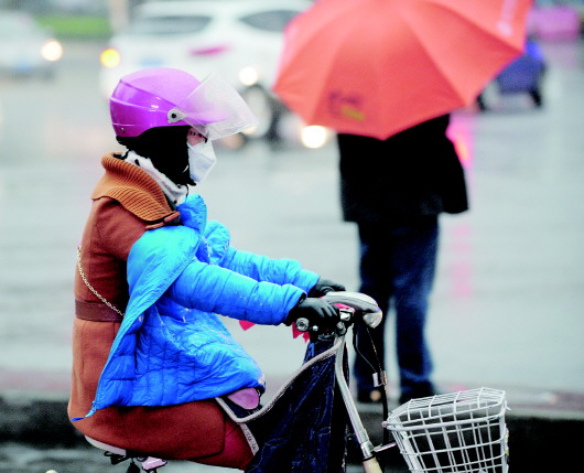 3月31日,济南街头下起小雨,气温从前一日的27摄氏度突降至晚六点的10摄氏度,街头寒气袭人,人们纷纷穿起了厚衣服。