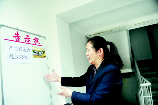 3月31日,记者一进单元门,就看到了社区制作悬挂的告示栏,告示栏周围墙壁粉刷一新,整个楼道里没有一张小广告。“告示栏就是专门治‘牛皮癣’的,有需要贴的都贴到这里,不能满楼道随便贴。”环山路社区居委会主任石杰伟说。