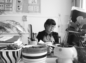 在王晓娟的办公桌上,放着许多绿植。