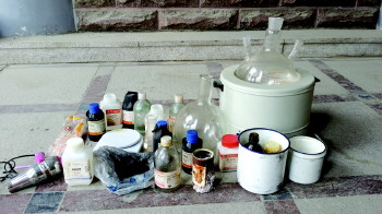 ◥公安机关缴获的制毒原料和工具。(资料图)