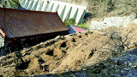 “3月6日9点左右,一台挖掘机在道观的南坡上作业。”明真观窦道长说,她当时上前阻止,但是作业人员态度很蛮横,没能阻止得了。“以前山体保护得很好,整个山坡都是树木和植被,现在只剩下光秃秃的一片沙土了。”窦道长心疼地说。