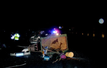 3月31日晚9点左右,在莒县招贤镇驻地,一辆电动车横穿马路时和一辆正常行驶的面包车相撞,面包车车头受损严重,三轮车主轻微擦伤。