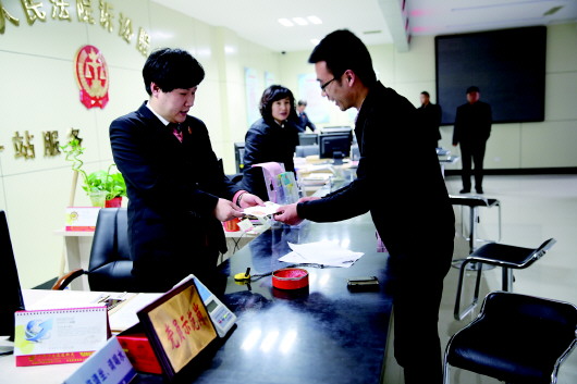 惠民法院立案大厅工作人员递给当事人一张信封。