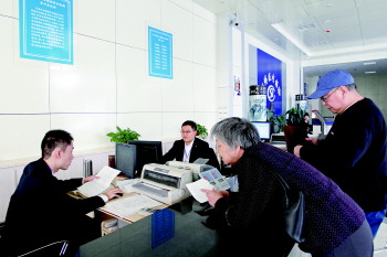 市民在医保服务大厅办理手续(资料片)。