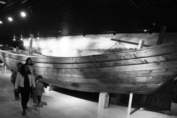 近20米长的元代古船在展厅内展出,这也是运河博物馆内体积最大的展品。 记者 李军 摄