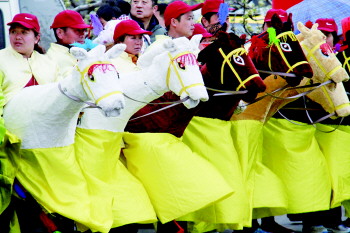 梨园文化观光周现场举办农民文化节,农民现场表演竹马、秧歌等。 本报记者 李军 摄