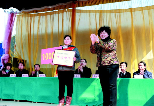 ◥孙宗珍(前左)被评为孝里镇2014年年度“十大孝子”。