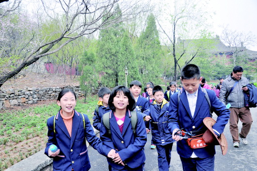 春游为孩子们提供了难得的亲近自然的机会。 本报记者 李飞 实习生 孙娜 摄