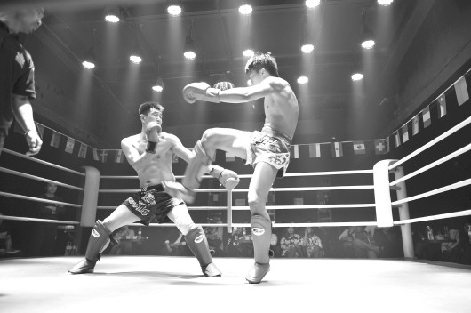 我省首家搏击酒吧落户济南。4月1日晚,位于济南山大路上的朋友圈酒吧搏击俱乐部引来了首场精彩的搏击大战,来自潍坊、济宁等地的搏击爱好者纷纷登台挑战。这是我省首家搏击主题酒吧,酒吧负责人介绍,搏击酒吧是一个交流的窗口,目的是吸引更多的搏击爱好者,将这项时尚健康的运动推广给众多朋友。 本报记者 陈文进 摄