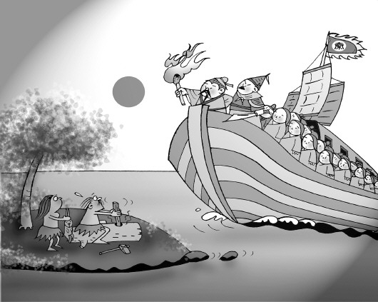 从宋至今,很多国人认为徐福东渡就是去了日本。 漫画/侯晓强