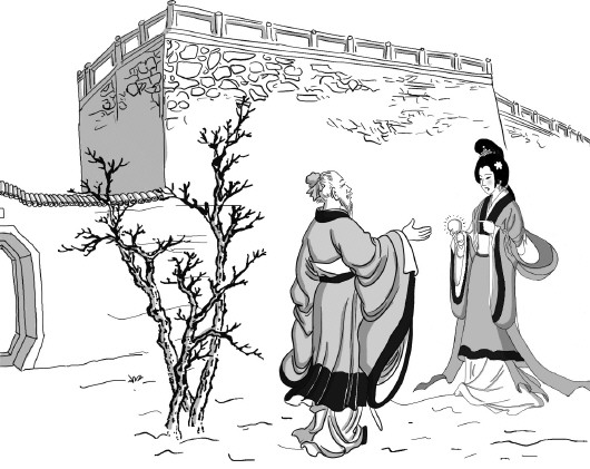 李丞相献计救危难,虞美人夜拜怪老翁。 漫画/徐进