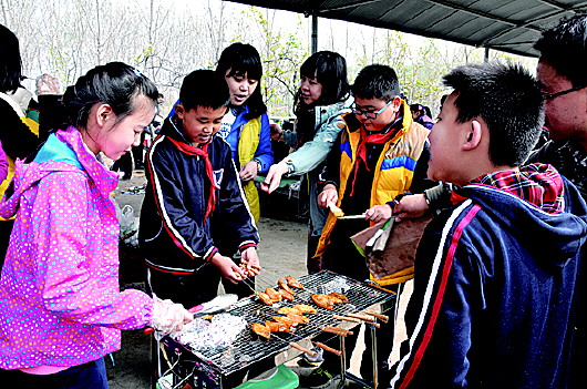 清明小长假,山师附小五年级三班组织学生集体踏青郊游,拥抱自然。在老师和家长的指导下,孩子们在野外学习自助烧烤。