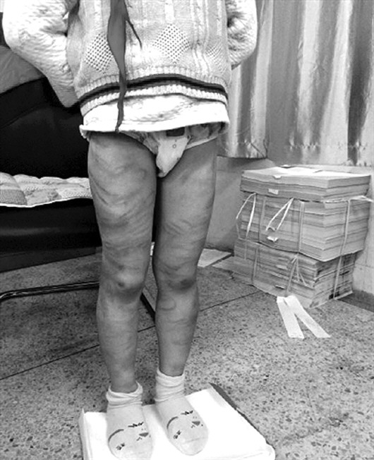 被施暴的男童浑身都是伤痕,看得人心疼。