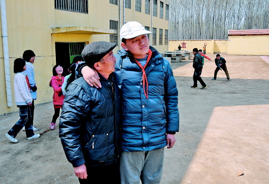 现在的思众身高一米七八,体重180斤,刚开始上学的时候骑在爷爷脖子上,现在他总是搭着爷爷的肩膀走路。“他离不开我,我有时生气把他训哭了,我推门要走,他就赶紧抱住我。”刘传福说这话的时候,眼泪就顺着脸上的皱褶流了下来。