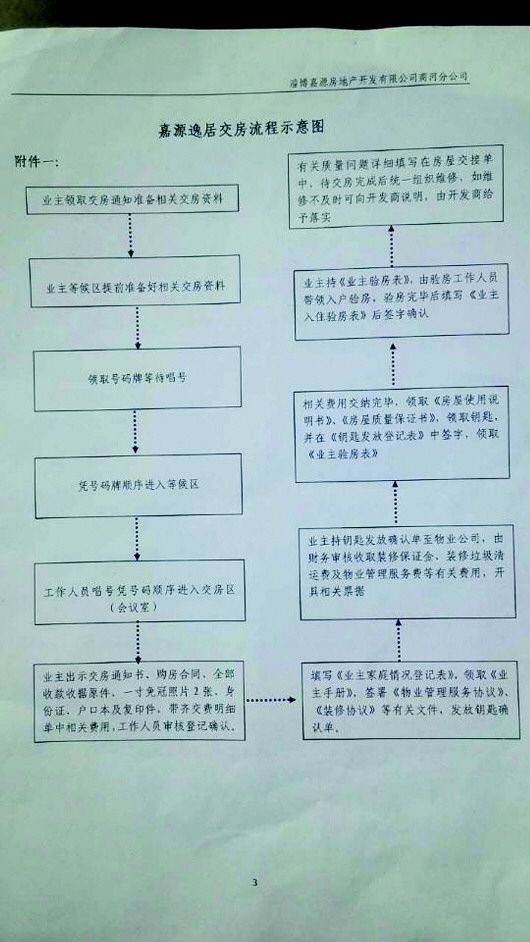3月26日,本报以《本该入住的新房,土堆堵住单元口》为题对嘉源逸居小区八栋楼延期交房三个月的情况进行了报道。报道后,嘉源逸居小区开发商4月1日通知延期交房的四栋楼的业主于4月2日交房。然而让业主感到不解的是,开发商在交房之前,让业主交了3个月的物业费和500元的装修押金,并规定只有交钱才能交房,然而交了钱的业主却发现,新房里竟连水电都没有。