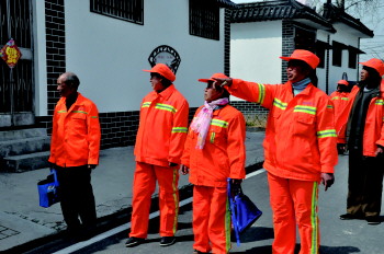 8日,任城区环卫处的环卫工人正在观摩石门山镇美丽乡村示范点梨园村的卫生保洁情况。当日,任城区城市管理局的200名环卫工人前往曲阜市“取经”,学习该市创建全国卫生城市的成果。8日至11日,799名环卫工人将陆续前往曲阜学习。 本报记者 公素云 通讯员 魏玉荣 摄