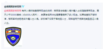 泰国国家移民局官方微博截图。
