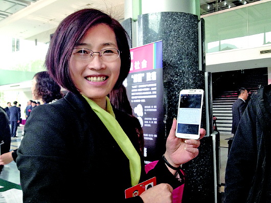 9日上午,参加济南市政协十三届四次会议的陈静委员通过微信找座位。委员在济南政协的微信上输入名字后,就可以收到座次消息和找座指南。通过扫微信找座次,在济南两会中是首次,在全国也是首次。