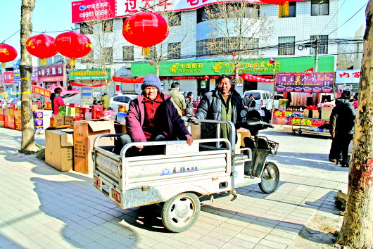◥每年正月十六孝里镇庙会,徐吉文都会用电动三轮车拉着奶奶赶会听戏。