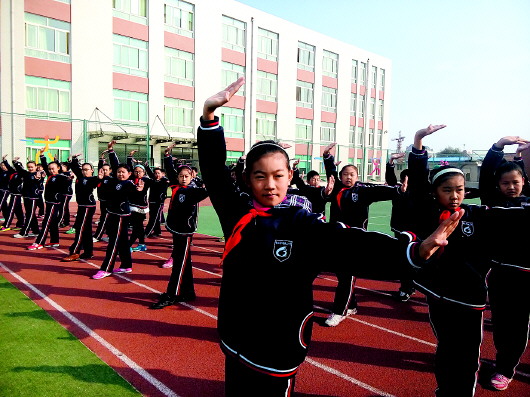 为推进学校阳光体育运动,丰富小学生“大课间”体育活动,清照小学组织编排了武术广播操,受到广大师生的喜爱。