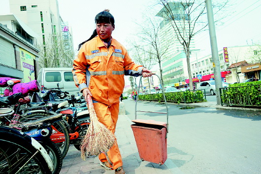 每天清早4点,闫晓芳就上岗了,赶在洒水车洒水之前把路面先扫一遍。早饭就在班上吃,中午有一个小时的吃饭和休息时间,下午2点半回家,晚上6点到9点再次回来值班。环卫工人不但每天工作时间长,还几乎没有假期,但闫晓芳甘之如饴。