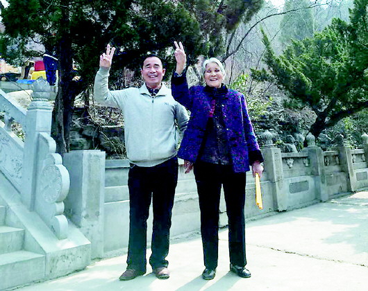 张荣林与母亲的欢乐合影。