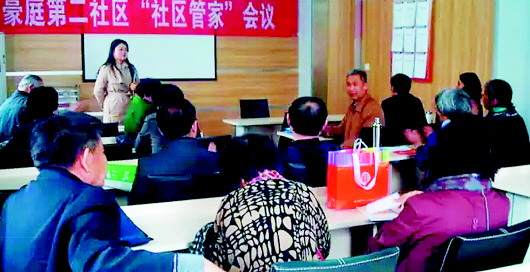 本报讯(记者 肖龙凤 通讯员 高燕) 名士豪庭第二社区共有40多名楼组长,这些楼组长活跃在社区内,做着各项服务社区服务居民的工作,是社区里的管家,可不要小瞧这些社区管家,小区一幢楼的楼组长可是个厉害的“角儿”——柴米油盐你要知道哪降价,水暖电气你要晓得哪能修,文体科教你要明白怎么搞,必要时计划生育同样要懂,大事化小、小事化了。