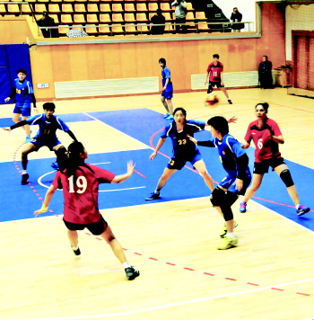 女子手球比赛现场。本报通讯员 王宪金 摄