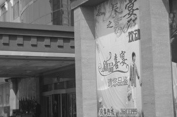 某酒店打出婚宴宣传海报。 本报记者 于伟 摄
