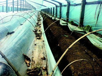 偕户村马岁东种植了3.8亩红芽姜,姜芽也出现腐烂现象。偕户村种植户李新国种植了5.7亩红芽姜,其中一个大棚在种植过程中,因为雇工患有心脏病,受不了金益茂高效微生物菌剂的刺鼻气味。在使用一部分后,李新国当即决定不使用金益茂微生物菌剂。