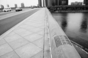 近日,在东方红路岔河桥上,桥栏上印满小广告,影响市容市貌。 本报记者 马志勇 摄