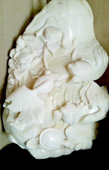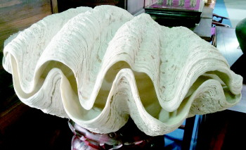 方士勇说,2001年,他从海南买回一个有300多年历史的砗磲,做成了宽51cm,高97cm的“年年有余”造型,加起来花了仅仅不到3万元。而在国内一次拍卖会上,一款差不多“年纪”和尺寸的凤凰砗磲造型,以100多万元的价格拍出。