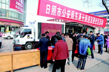 4月9日上午,东港公安组织法制、刑侦、治安、经侦、网安、食药环侦、户政、外事科室和治安防控办公室的30余名民警,成立法制宣讲团,在黄海路派出所配合下,来到石臼街道华林社区开展了“送法进社区”活动,这也标志东港公安系列送法到基层活动开始启动。