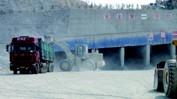 部分企业运输车辆未采取密闭措施。 本报通讯员 王军 摄