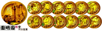 ▲订购三套的客户加赠价值12800元的第一套黄金“圆明园十二生肖彩色金币”。