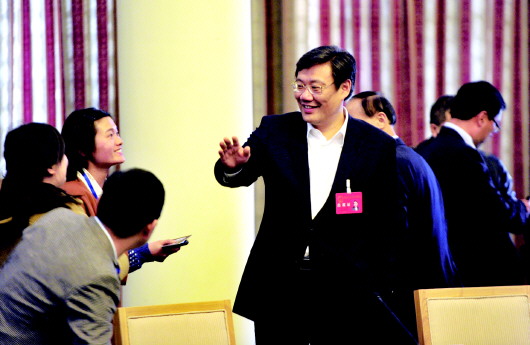 10日,济南市第十五届人大四次会议分组审议政府工作报告,王文涛在长清代表团发言结束后,跟记者们告别。本报记者 王媛 摄