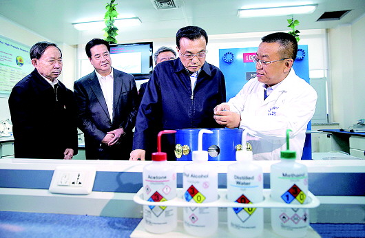 在吉林大学,李克强走进无机合成与制备化学国家重点实验室,详细了解科研项目进展和应用前景。他说,国家要深化科技、教育等体制改革,在推进科技成果产业化的同时,继续加大对基础研究的支持。他说,虽然这一研究现在看像“坐冷板凳”,但将来会变成“热领域”。国家核心竞争力要靠基础科学研究,根基扎实才有原始创新,才会有世界一流佳绩。李克强对大学生创业者说,在校学生首先要把学习搞好,边学习边创业,把学到的知识用于实践当中。总理强调,在校大学生“第一位的还是学习”,学习是基础,不仅要向书本学,还要向实践学,创业实际就是在实践中学,这会让知识学得更扎实有用。