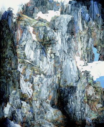 评论家评论:杨文德创作的《大壑幽深》,既有传统的笔墨韵味,又有新的材料技法的运用,极具装饰感和时代性,有着很强的视觉冲击力,给人耳目一新之感,在一定程度上突破了传统大青绿山水画的旧有程式。