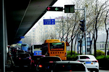 12日上午,记者来到宁夏路与吴兴路路口,该路口西向东方向为两车道,左侧是左转及直行车道,右侧是直行车道。自10点8分至10点28分之间,直行信号灯在20分钟内进行了10次红绿灯转换,共有15辆车闯红灯。期间,除10点12分的红灯时,有一辆车急刹车未过线外,剩下的9次直行红灯里每次都有车闯过,10点25分时有5辆车接连闯红灯驶过。记者注意到,在这20分钟里的每一次绿灯转红灯之间,都没有黄灯闪烁以提示信号转换。当禁止直行时,红色的直行箭头显示在灯架左侧,绿色左转箭头到了灯架右侧,两种指示箭头的互换位置也给辨认此处信号灯增加了难度。