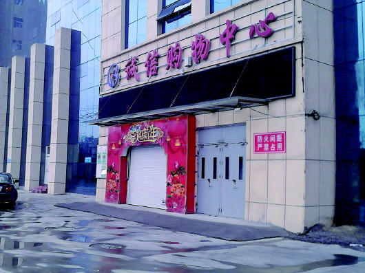 13日上午,黄河二路渤海十一路西北角的诚信购物中心东门紧闭。