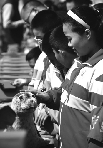 逼真的海洋动物标本让孩子们大开眼界。 本报记者 李岩松 摄