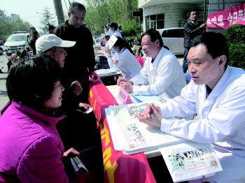 义诊活动开始后,菏泽市第三人民医院、菏泽牡丹区中医院和菏泽爱尔眼科医院的专家一到现场,不一会儿,问诊台前围满了前来检测、咨询的市民。
