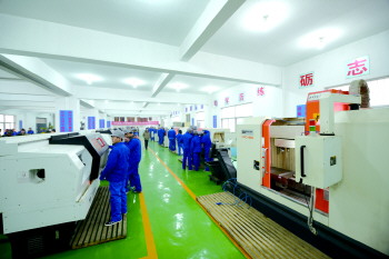 ◥在菏泽高级技工学校的数控专业教学工厂中,学生正在操作。