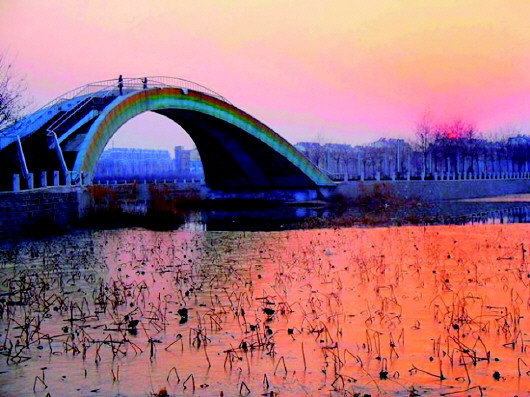 15日,横架于彩虹湖上的景观桥被拆除。新彩虹桥是长48米、宽25米的车辆通行桥,后期路面上部的外观将继续保留彩虹主题,预计9月份完成。新桥建成后不仅持续之前的景观效果,还贯通了黄河一路,有效缓解了黄河二路的车行压力。
