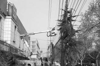 近期,枣庄供电公司开展“电力通道百日清障”活动,努力创造和谐顺畅的电力输送环境,确保电力供应和人身安全。图中,该公司滕州客户服务分中心(运维站)正联合地方园林、城管等部门利用带电作业车,对滕州市城区学院路道路两侧电力线路防护区内的绿化树木进行修剪。 本报记者 张冬梅 本报通讯员 班开超 王葳 摄影报道