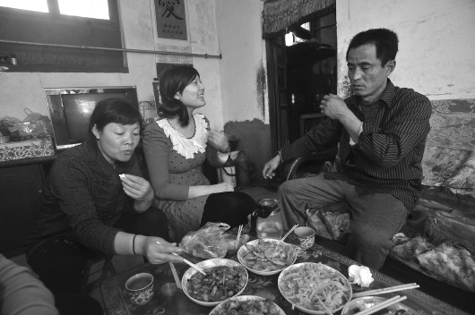 18日回到家终于又可以和家人一起吃饭,刁姿静牵挂着爸爸的眼疾。 本组照片 本报记者 张中 摄